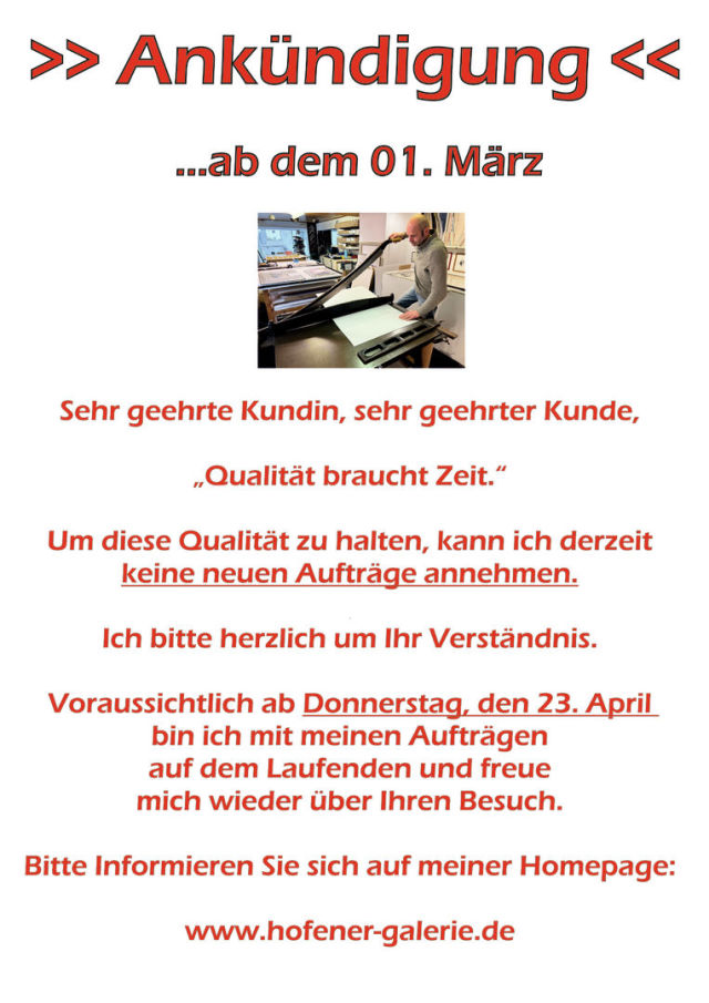 - Einrahmung in eigener Werkstatt